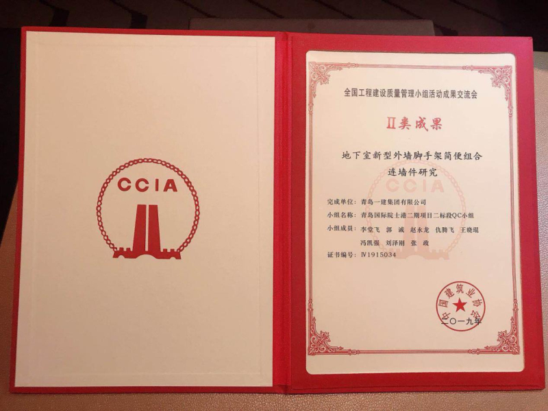 ? ? ? 近日,,,,,中国建筑业协会举办的全国工程建设质量管理小组活动成果交流会在宁夏回族自治区银川市举行,,,,,青岛yl6809永利集团选送的《地下室新型外墙脚手架简便组合连墙件研究》在会上取得了全国Ⅱ类成果(二等奖)的佳绩!