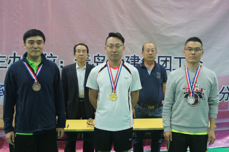 ? ? ? 男双比赛由老牌组合东昊安装王义敏、于家淼组合获得冠军,,,,,,,,刘京帅、高玉磊组合获得亚军,,,,,,,,东建建设岑洪朝、赵联亚组合获得季军。。。。。。